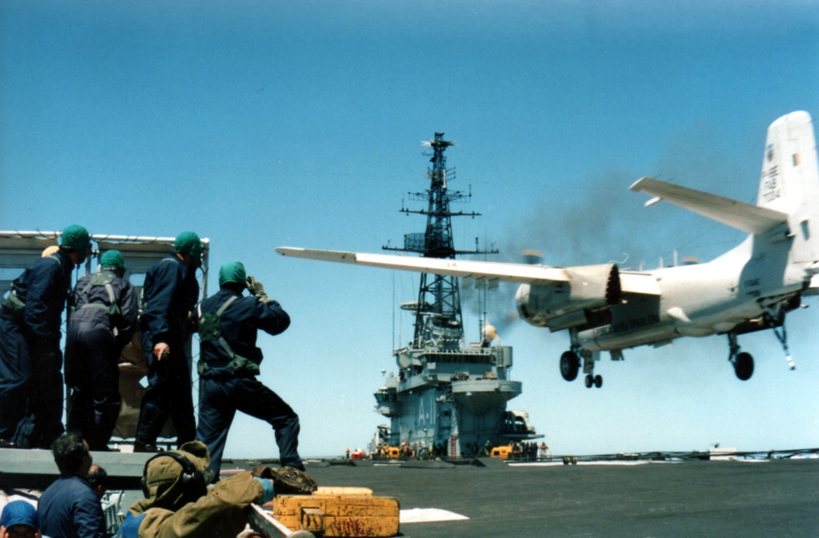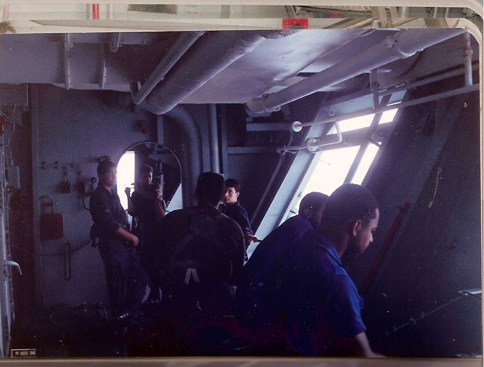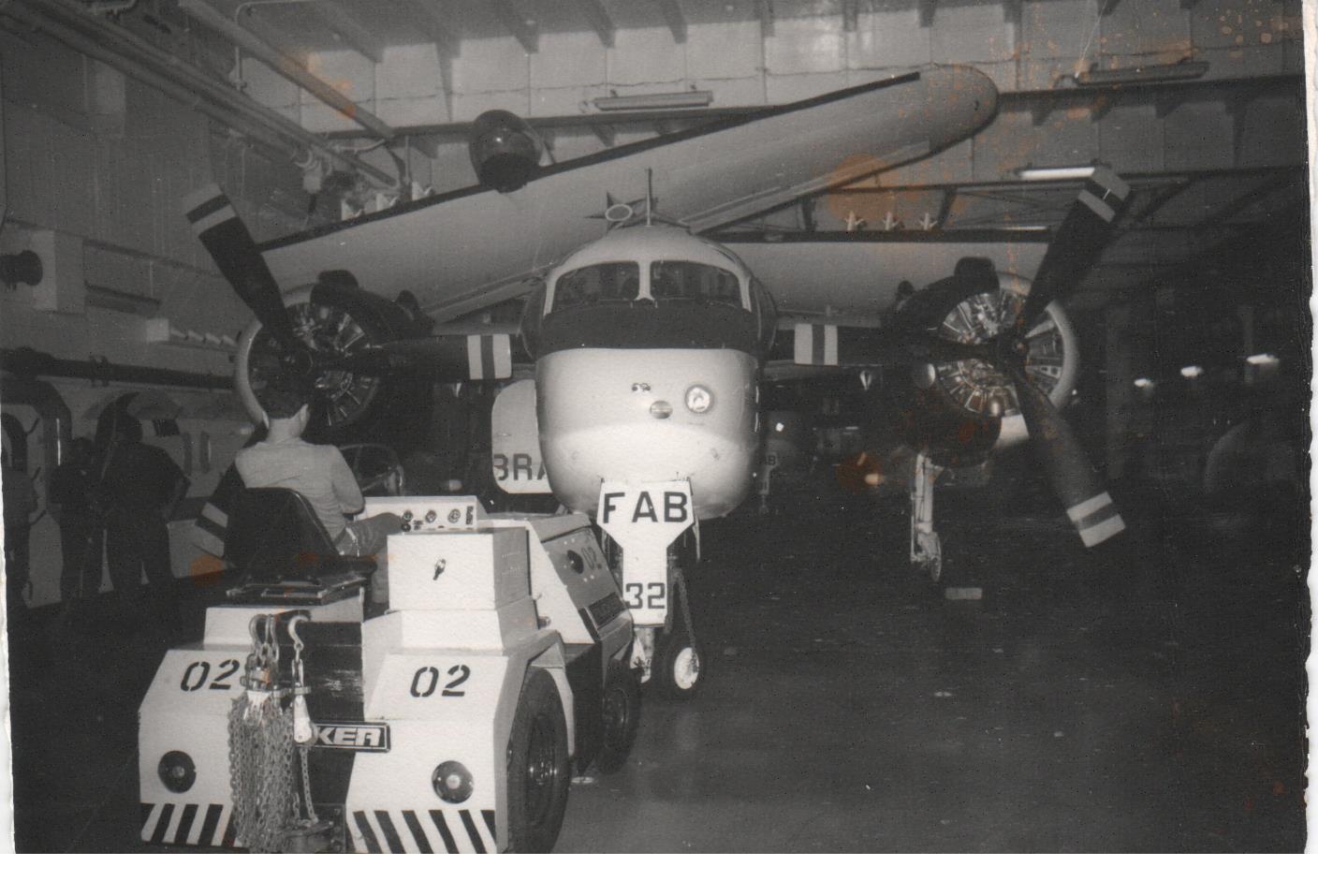 Looking forward, the open spaces of the hangar deck, just below the Island. At the left of the photo, was the only starboard side passage to the hangar itself.