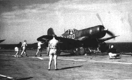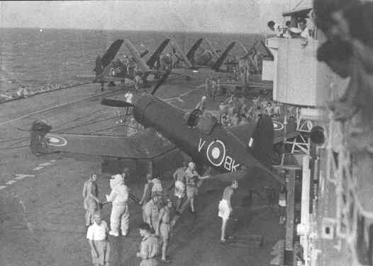 1850 Sqdn. Corsair and 812 Sqdn. Barracuda on Flight Deck.