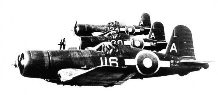 Corsairs from 1850 Squadron in flight over Hong Kong, late 1945. 116/A (KD 64?) S/L. T. Rickell. 130/A (KD 545) S/L. P. George. 124/A (KD 730) S/L. Greaves.