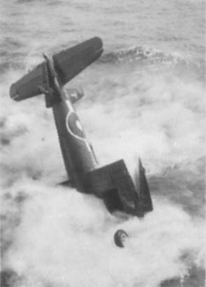 Brand new Lend/Lease Corsair, pushed over the side, early 1946.