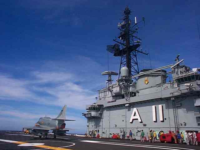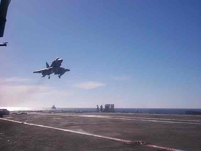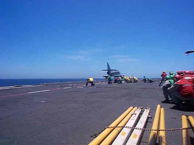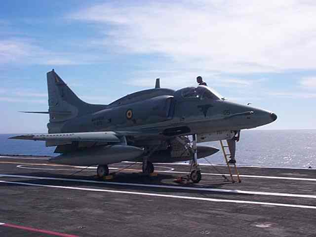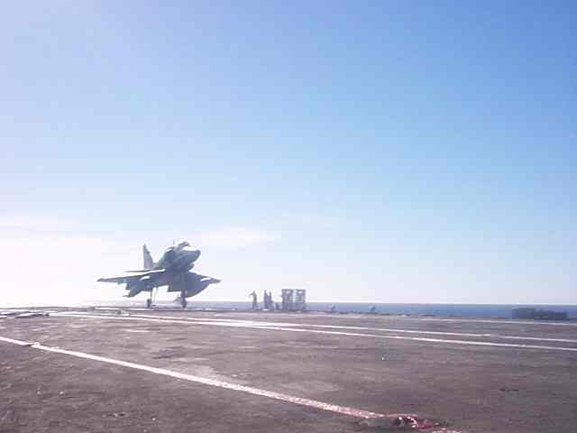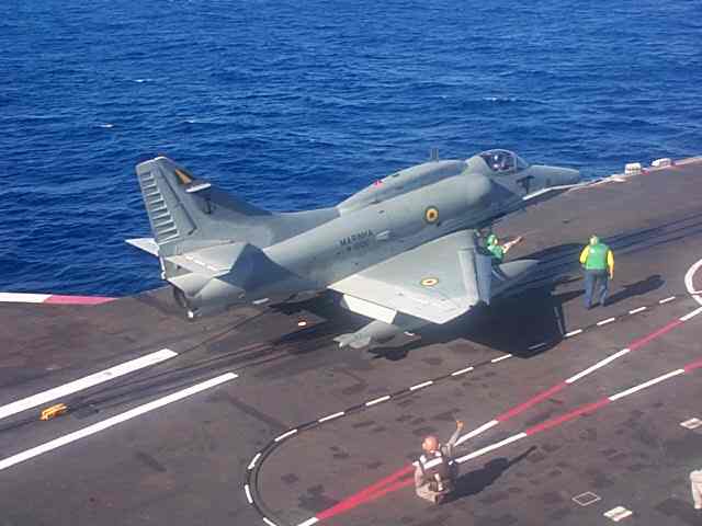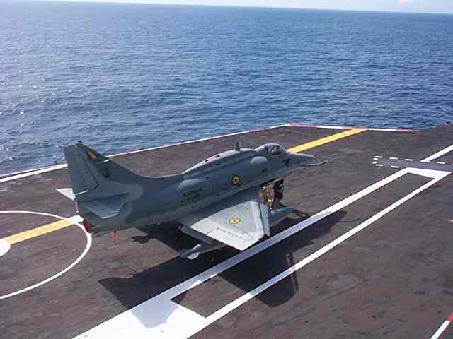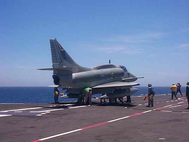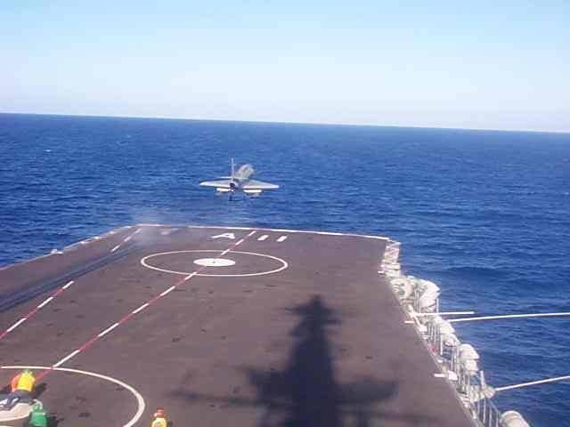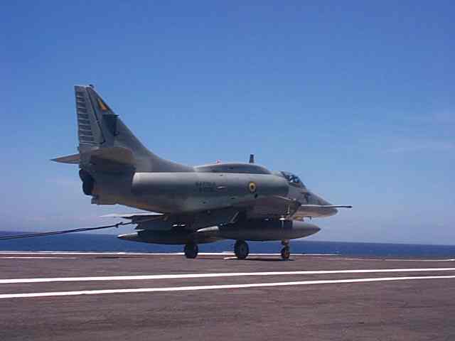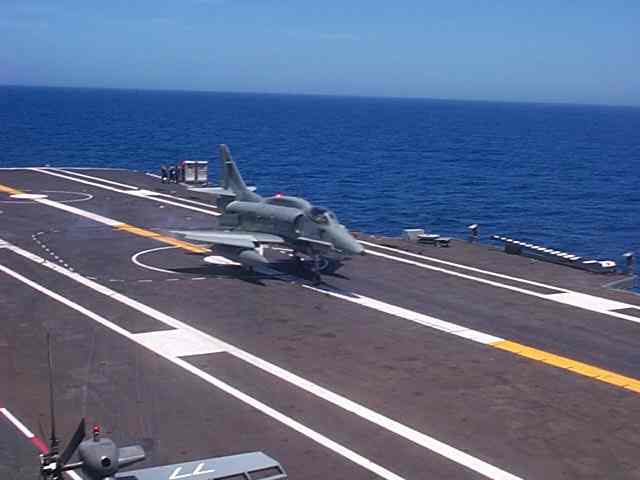 Pictures of the first landing and launch of a Skyhawk A-4. (January 2000)