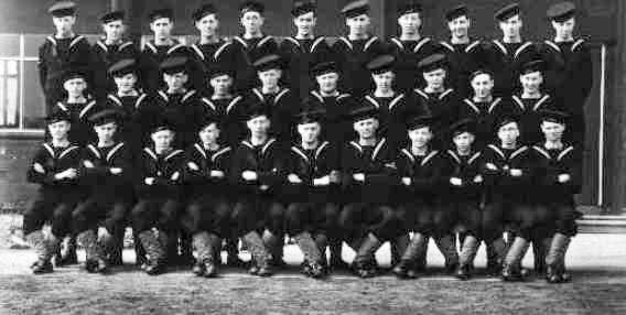 My Dad was conscripted or joined the Royal Navy (Fleet Air Arm) on the 27th March 1944, reporting to H.M.S. Gosling at Risley, Near Warrington, Cheshire, which was an F.A.A. Training School, as a Naval Airman/Mechanic. At that time, he was 17 years old, although the Royal Navy have his date of birth as one year older than he actually was. From the picture below, which was taken of the class at H.M.S. Gosling, they all appear to be quite young and probably wishing they were elsewhere?. After 10 weeks training, Dad left H.M.S. Gosling on the 9th June 1944.