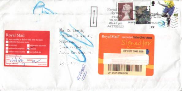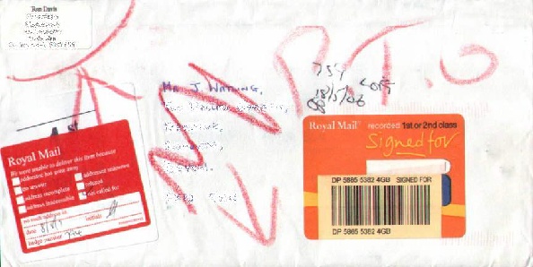 The Chairman is also at the same game, in not collecting his mail from the Sorting Office after a card was left for him, advising that a Recorded Delivery letter was to be collected from his local office. Again, this does not look good for the Chairman of an Association, who as part of the Committee decides who will be members and who will not, also ensuring that no-one will have their say, if it differs from their own opinions. This obviously confirms the 'conspiracy' theory between both the Chairman and Secretary, of the Association.
