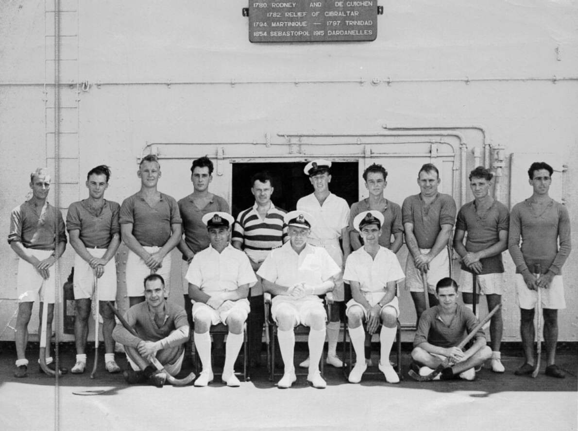 HMS. Vengeance hockey team. A/P.O. Bernard Hunt (standing 9th left to right). Others and date unknown.