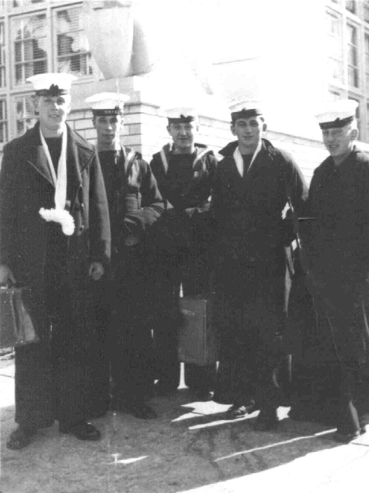 Trevor Murphy, 812 Sqdn. Electrician (4th left to right). Others unknown.