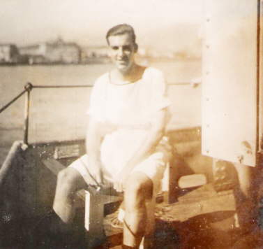 Able Seaman Bert 'Daisy' Bell (left), Bert was a hairdresser aboard the ship. Location and other unknown.