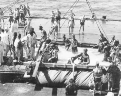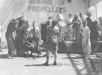 Crossing the Line Ceremony, with Royal Marines HMS. Vengeance, 9th July 1945.