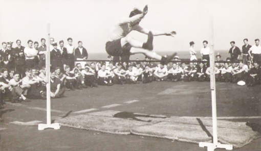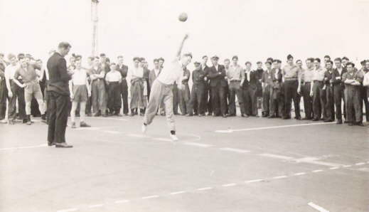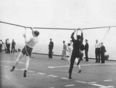 Discus throw, flight deck of HMS. Vengeance.
