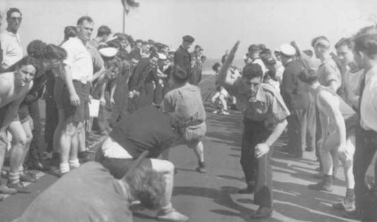 Sports day, flight deck of HMS. Vengeance.