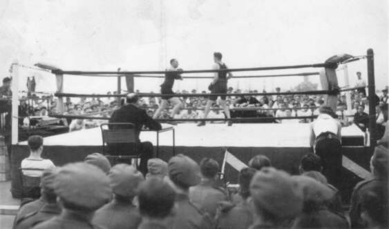 Boxing match, flight deck of HMS. Vengeance.