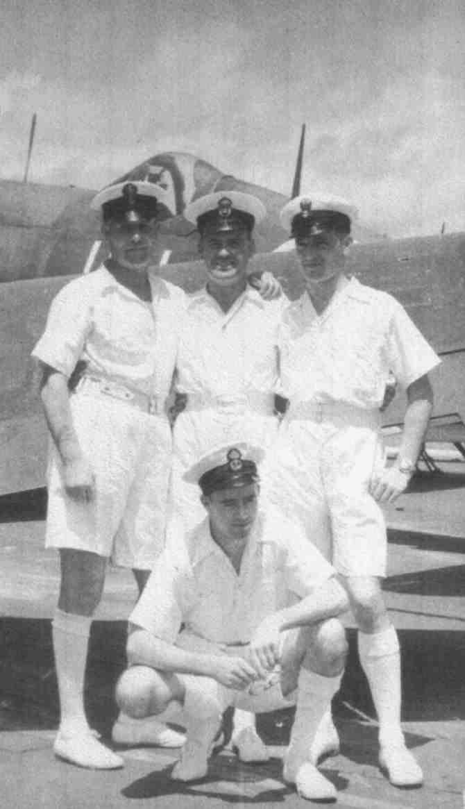 Regulating Branch HMS. Vengeance at Manus, Admiralty Islands in August 1945. Back row (l to r) RPO. Bond, C/RPO. ?, RPO. Poole. Front RPO. ?.