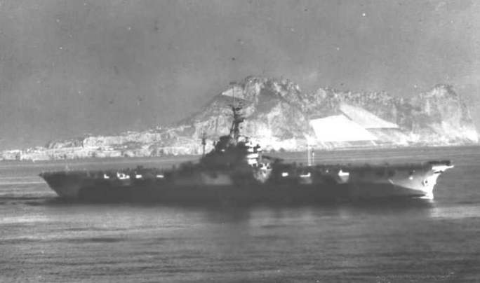 HMS. Venerable, Task Force Flagship off Gibraltar in March 1945. Photo taken from HMS. Vengeance.