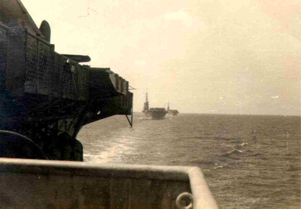 HMS. Colossus and HMS. Venerable on route to Gibraltar in March 1945. Photo taken from HMS. Vengeance.