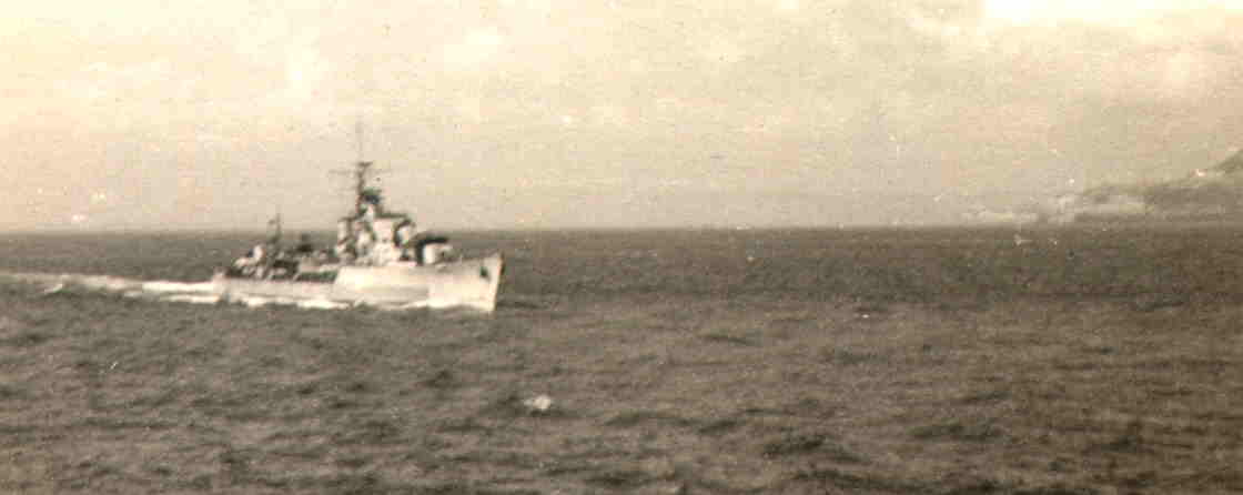 HMS. Teaser, Destroyer Escort off the coast of Gibraltar in 1945. Photo taken from HMS. Vengeance.