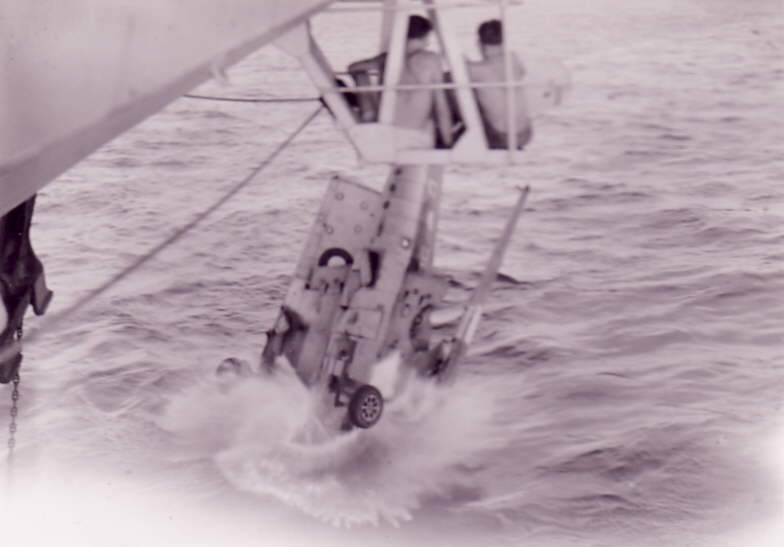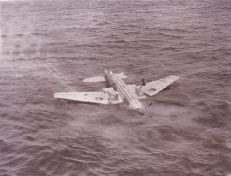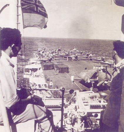 Heading for the bottom, surplus aircraft pushed over the side from HMS. Vengeance.