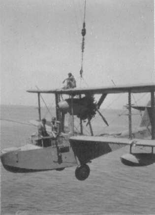 A Walrus is hoisted aboard HMS. Vengeance, obviously a visitor. Date unknown.