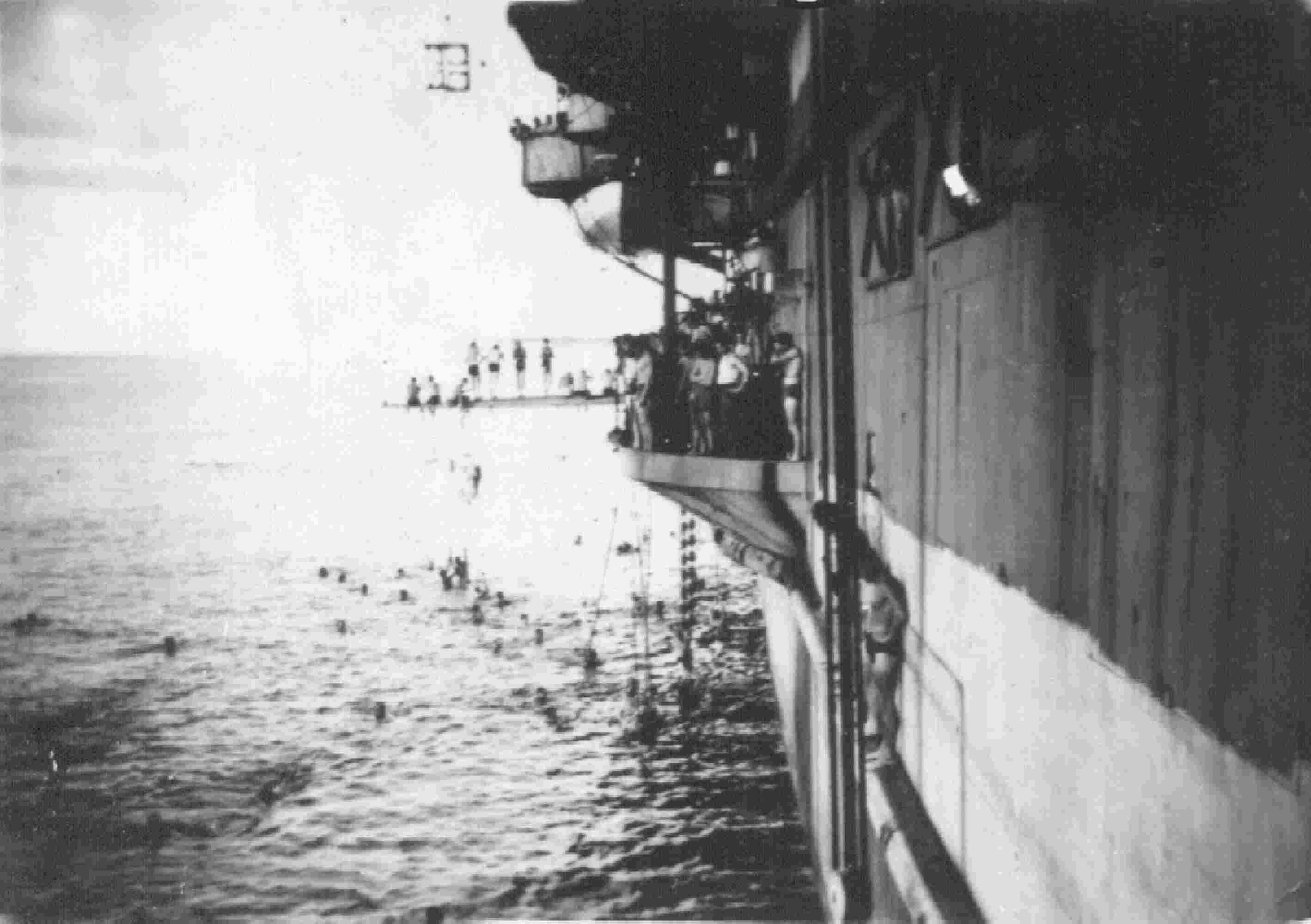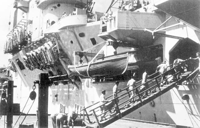 Royal Indian Air Force personnel boarding HMS. Vengeance en-route to Japan, April 1946.
