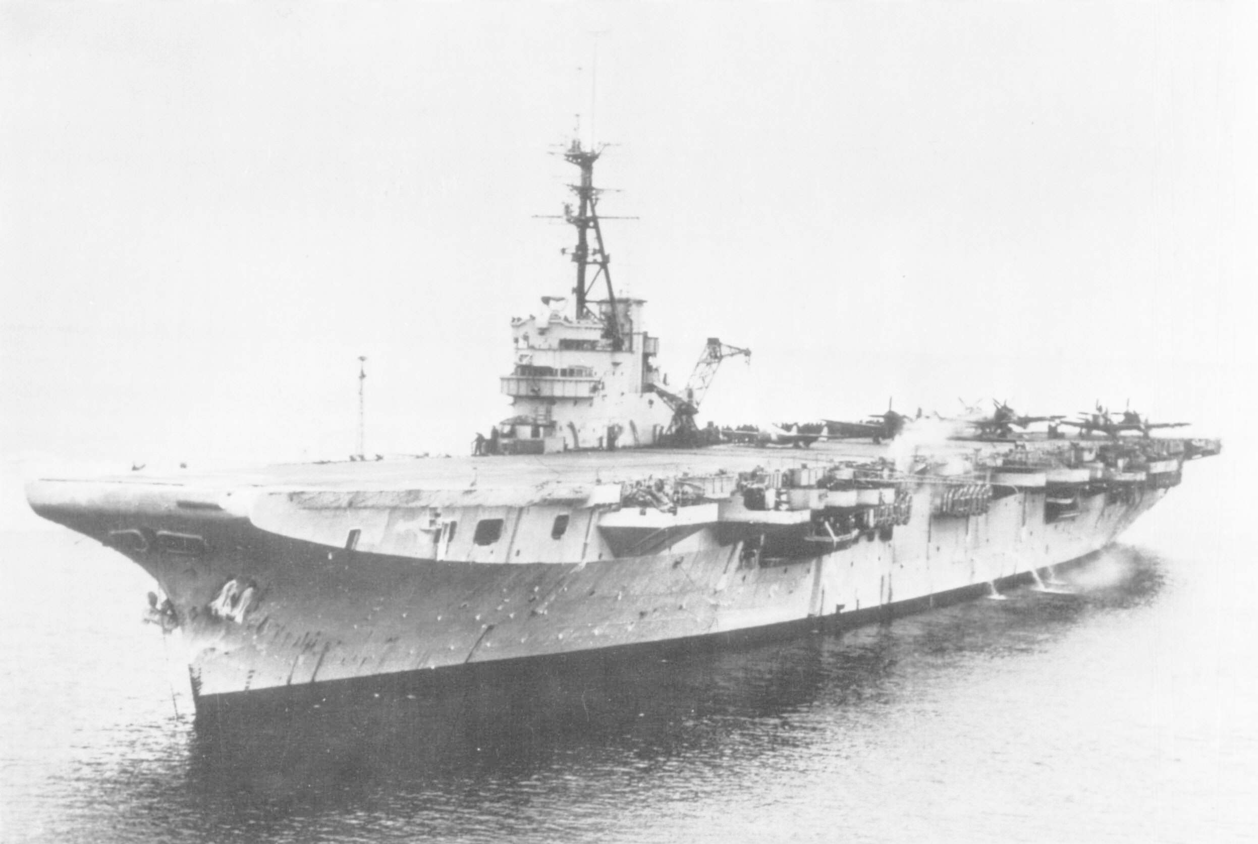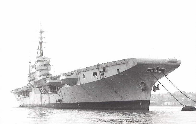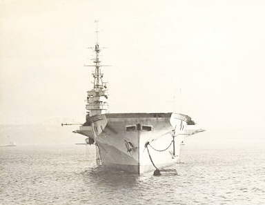 Starboard side Forward view of HMS. Vengeance. Date and location unknown.