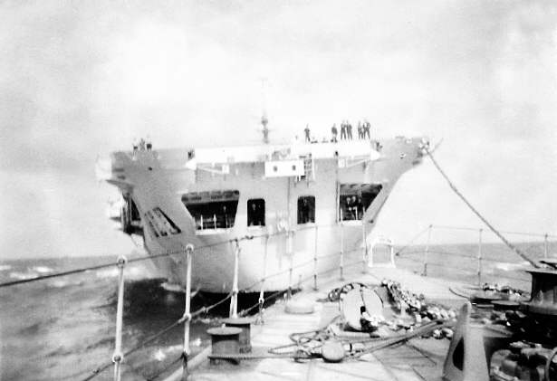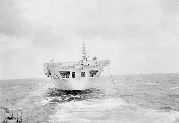 Rear of HMS. Vengeance, photographed from HMS. Tyrian in the Indian Ocean in 1946.