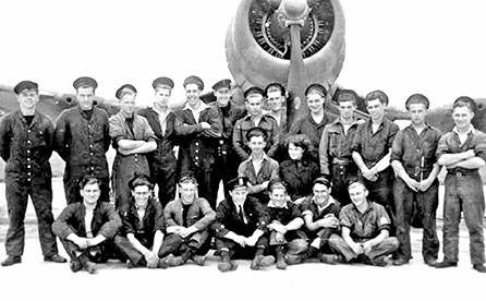 Ground crew of various trades in front of a Corsair at HMS. Vulture in 1944 - 45. (Centre) 'Nobby' Clark, (Centre - 2nd right) Electrician Wren (name unknown). (Seated 5th L to R) Armourer Reg Badger. Other's unknown.